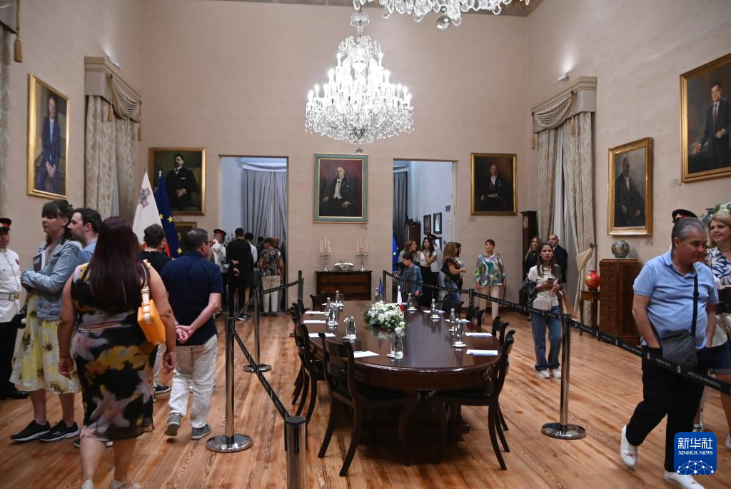 10月5日,人們在白夜節活動期間參觀位于馬耳他首都瓦萊塔的總理府。