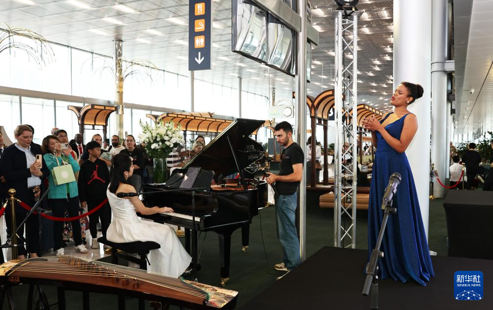 文藝表演環節,法國歌手喬伊絲·喬納森和越劇演員陳麗君聯袂演繹了《鳳求凰》,旅法二胡演奏家果敢和留法學生“古箏女孩”彭靜旋用中國傳統樂器詮釋了法國人耳熟能詳的《香榭麗舍大街》。演出吸引了來往旅客駐足欣賞。