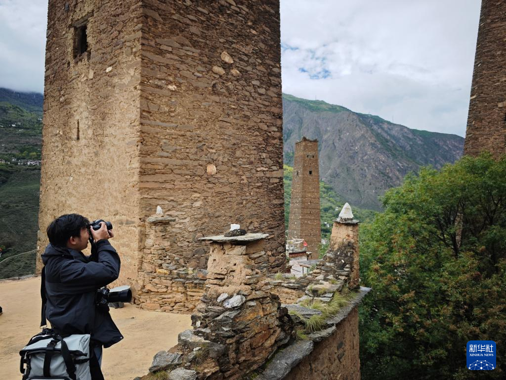 10月11日,一名大學生在丹巴縣拍攝藏族古碉群。