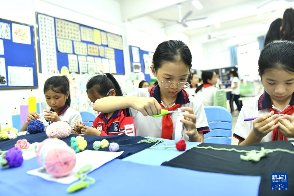 近年來,廣西梧州市長洲區鳳翔小學在民族團結進步創建工作中,將手工編織、漆扇等傳統文化引進課堂,讓孩子們在豐富多彩的活動中,傳承非遺文化。