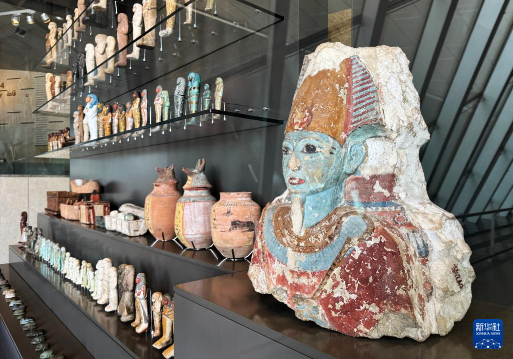 這是10月15日在埃及吉薩的大埃及博物館展廳拍攝的展品。