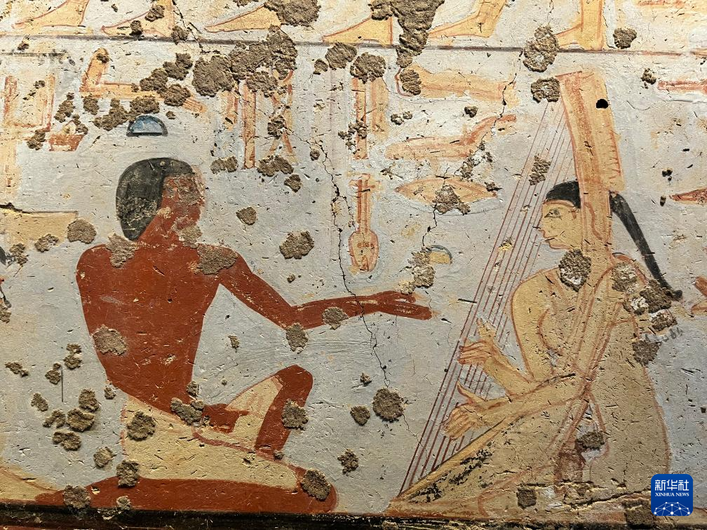 這是10月15日在埃及吉薩的大埃及博物館展廳拍攝的壁畫。