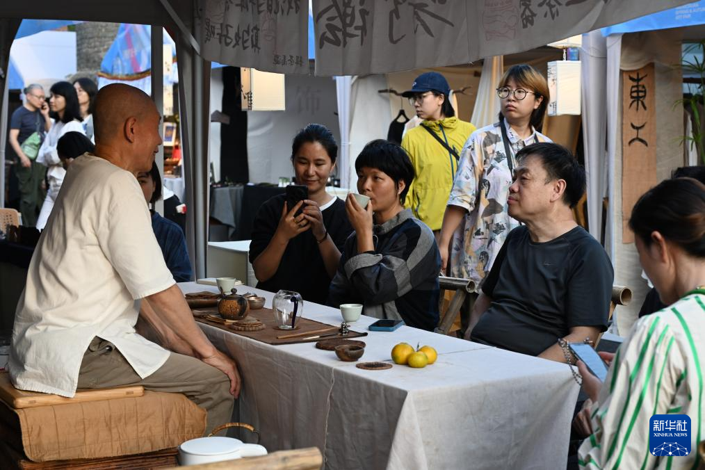 10月17日,游客在陶溪川春秋大集上了解茶藝。