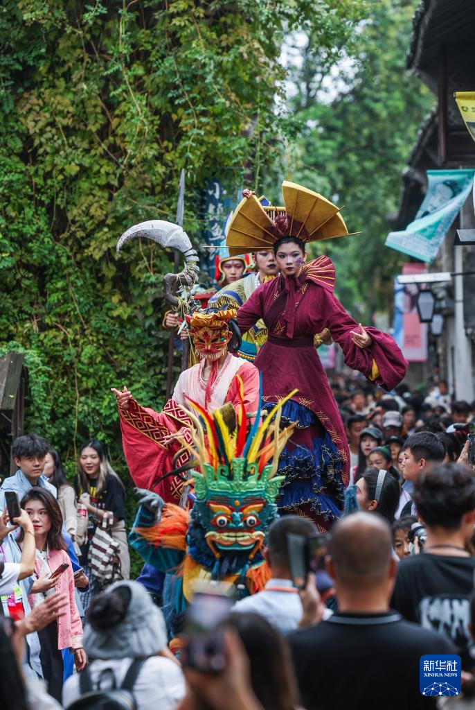 10月17日拍攝的烏鎮戲劇節古鎮嘉年華的踩街巡游。