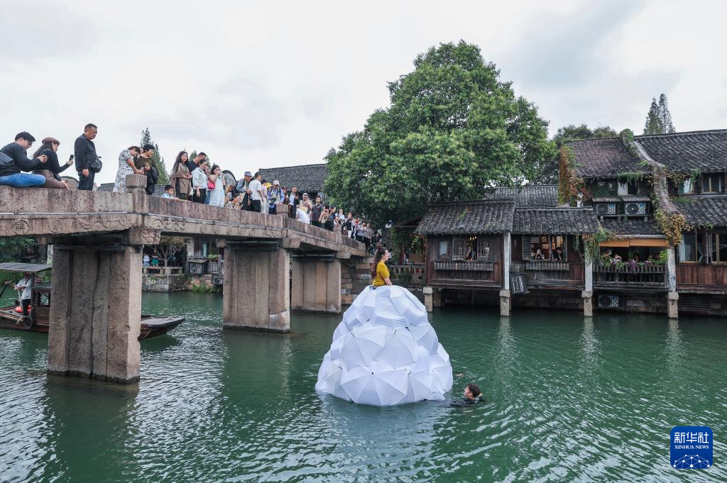 10月17日,烏鎮戲劇節古鎮嘉年華的水上歌劇《漂浮歌后》在排演。