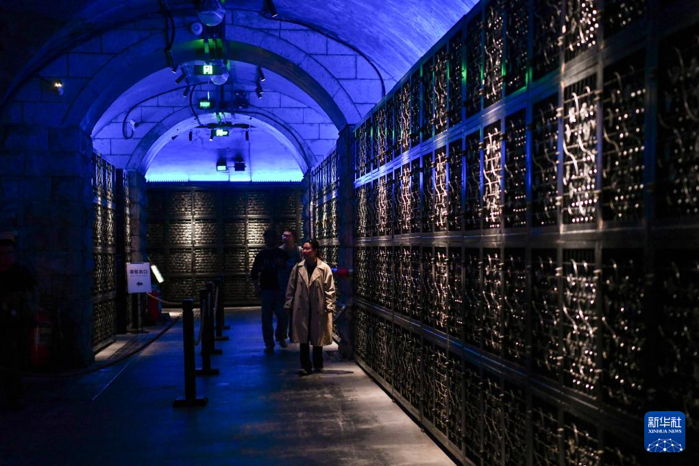 10月17日,參觀者在位于山東煙臺的張裕酒文化博物館張裕百年酒窖內參觀。