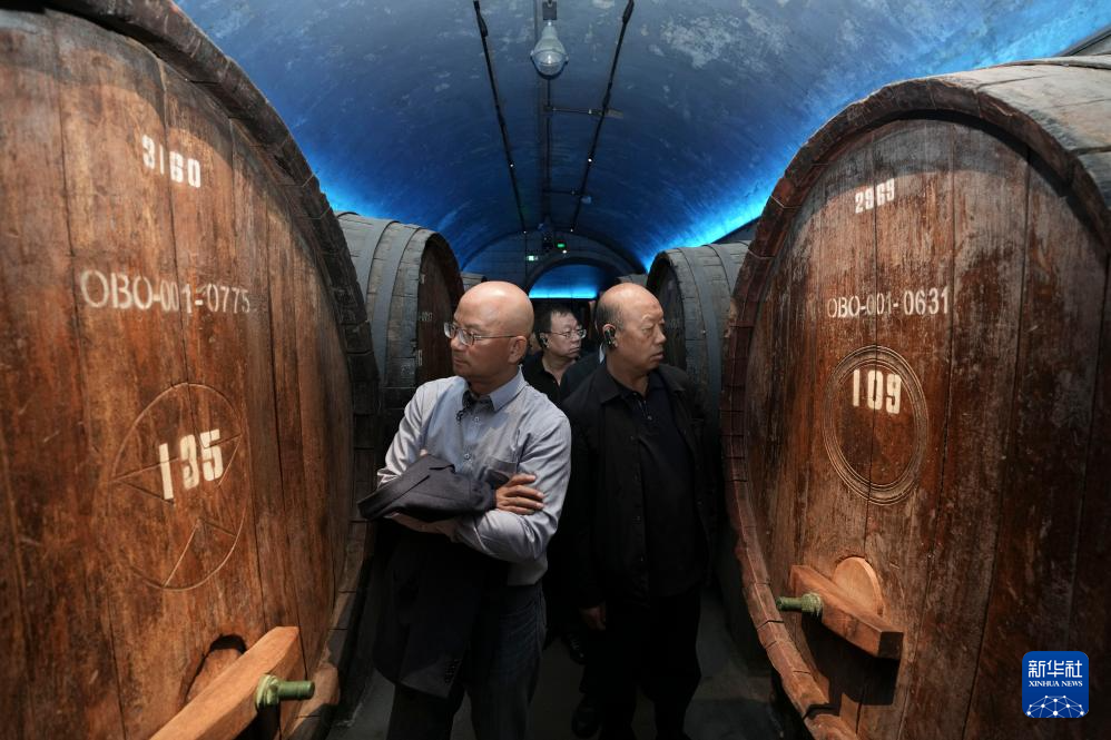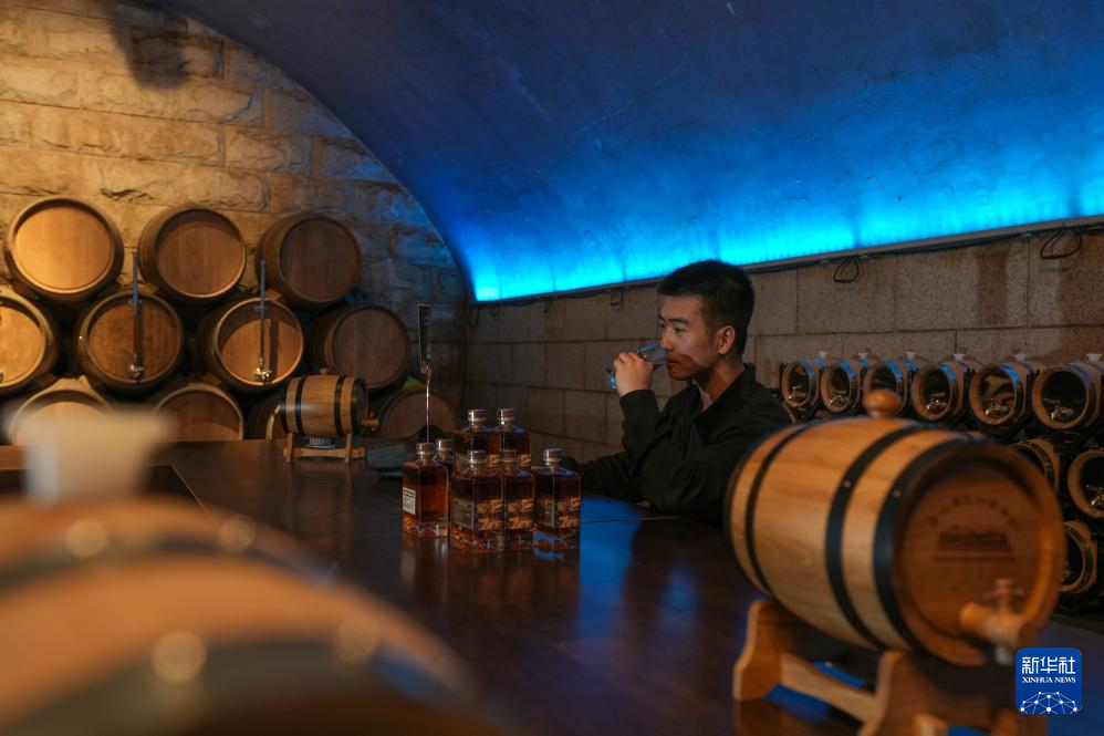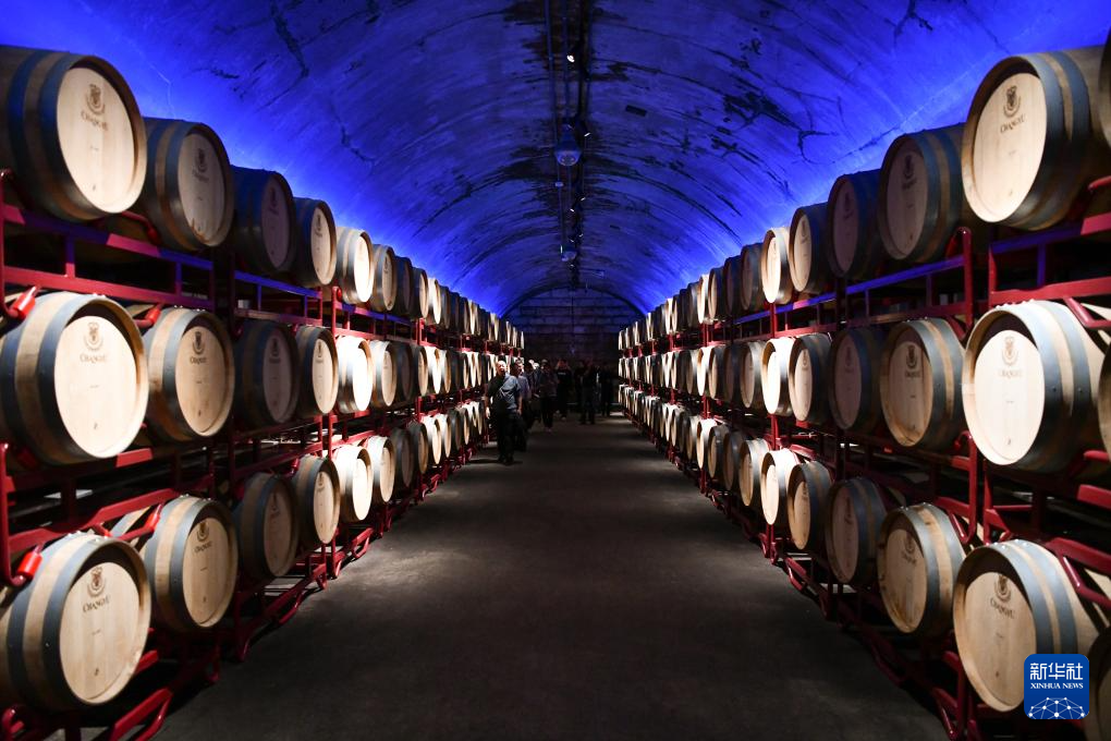 10月17日,參觀者在位于山東煙臺的張裕酒文化博物館張裕百年酒窖內品酒。