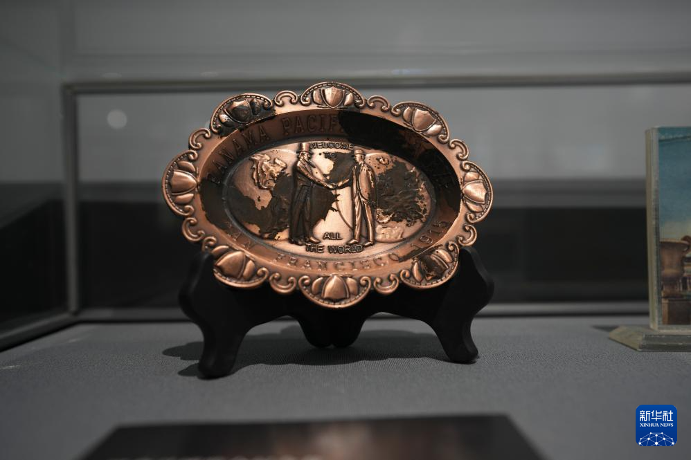 這是10月17日在位于山東煙臺的張裕酒文化博物館拍攝的巴拿馬博覽會紀念盤。