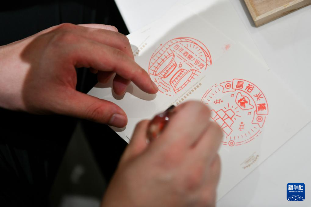 10月17日,參觀者在位于山東煙臺的張裕酒文化博物館蓋紀念章。