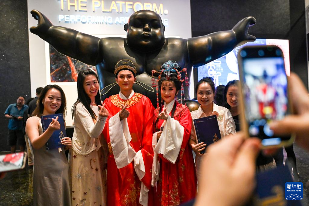 10月18日,在馬來西亞吉隆坡,觀眾與錫劇《追香記》的演員們合影。