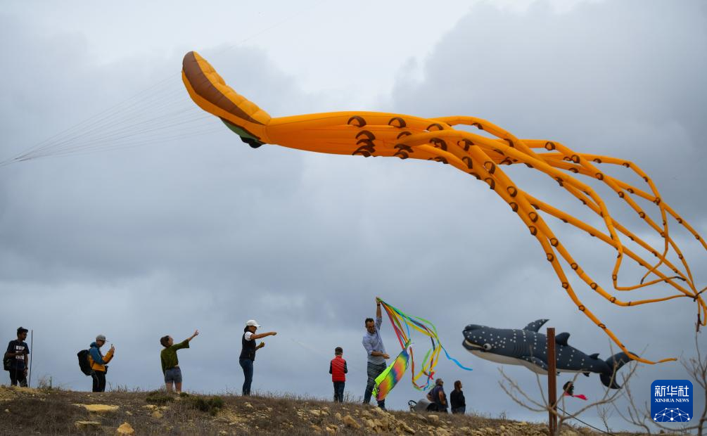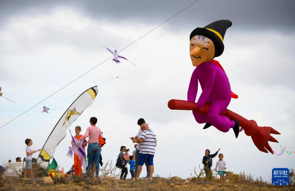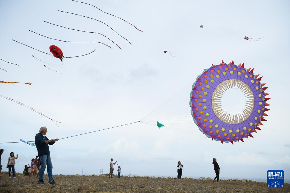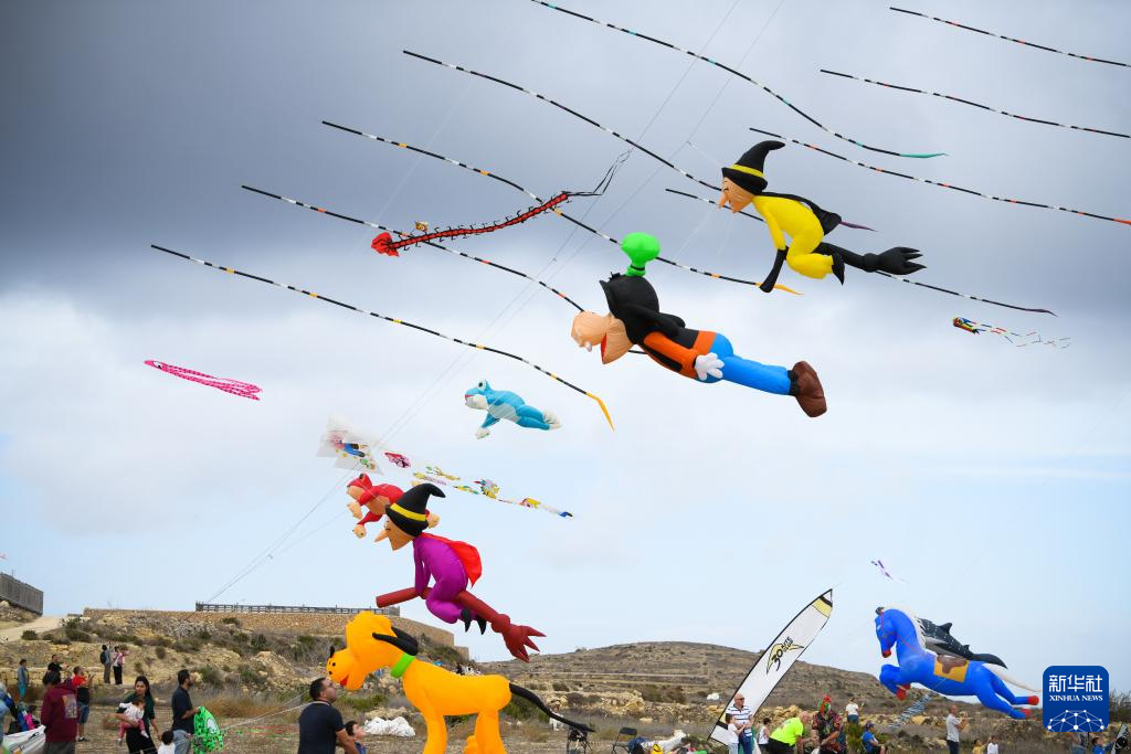 10月19日,在馬耳他戈佐島阿爾卜,人們在第7屆戈佐國際風箏節上放風箏。