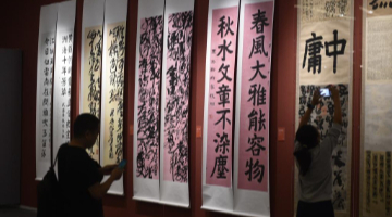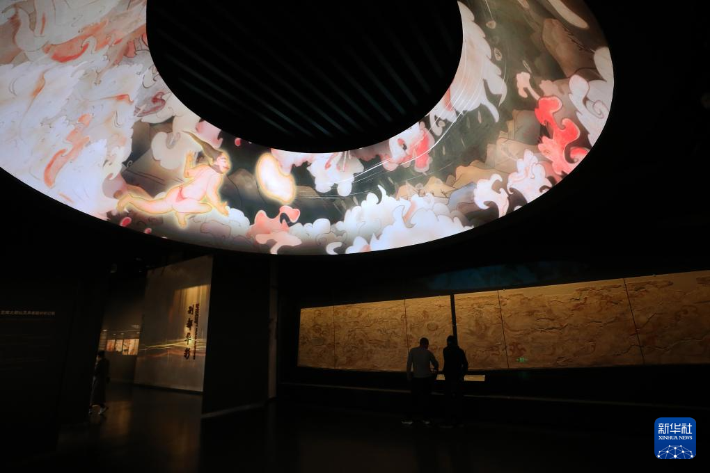 10月29日,觀眾在太原北齊壁畫博物館體驗互動項目。