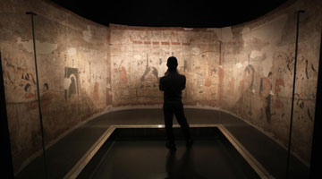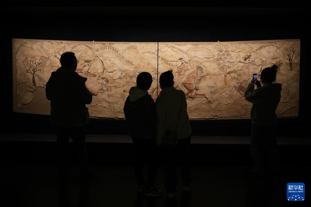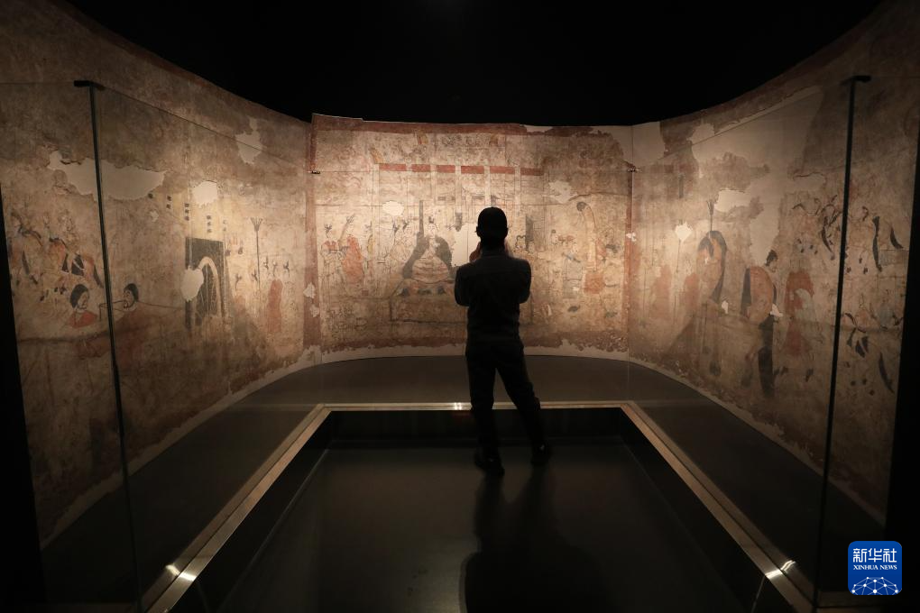 10月29日,觀眾在太原北齊壁畫博物館參觀。
