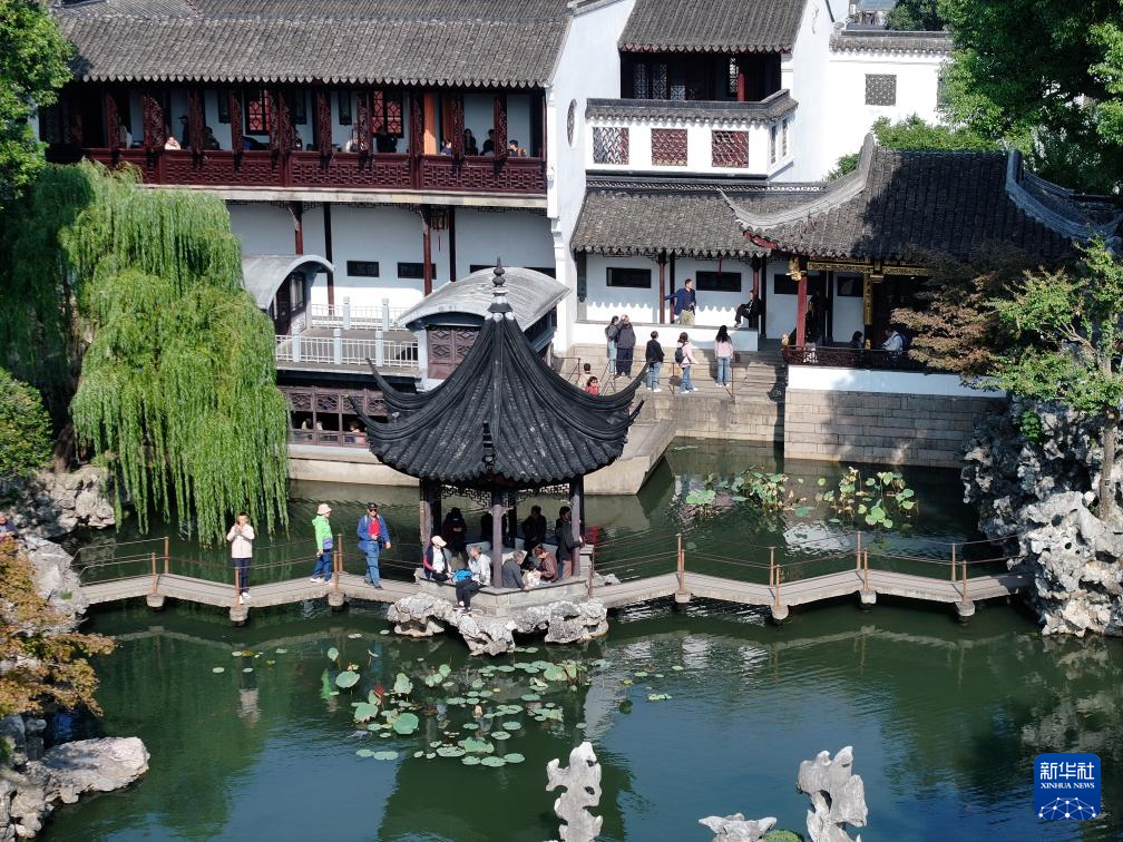 游人在留園參觀游覽(10月23日攝,無人機照片)。
