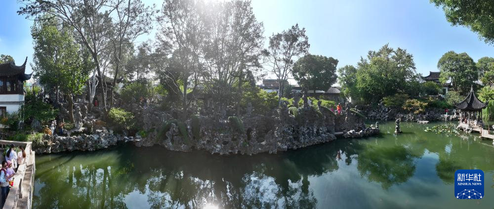 游人在獅子林參觀游覽(10月23日攝,無人機照片)。