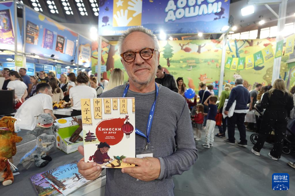 10月26日,在塞爾維亞貝爾格萊德的第67屆貝爾格萊德國際書展上,本屆書展“最佳出版商”獎獲得者、塞爾維亞知名童書出版社“創意中心”執行經理貝戈維奇展示由該出版社出版的漢字啟蒙書。