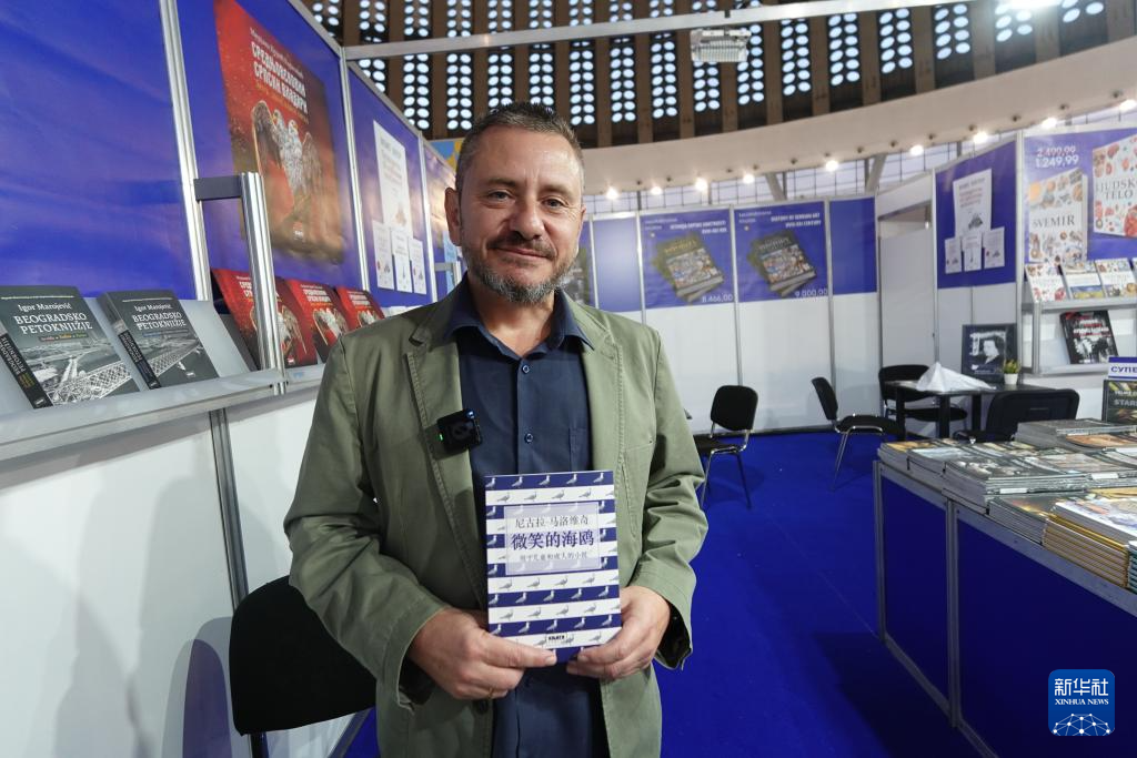 10月26日,在塞爾維亞貝爾格萊德的第67屆貝爾格萊德國際書展上,來自黑山的作家尼古拉·馬洛維奇展示其作品《微笑的海鷗》中文譯本。