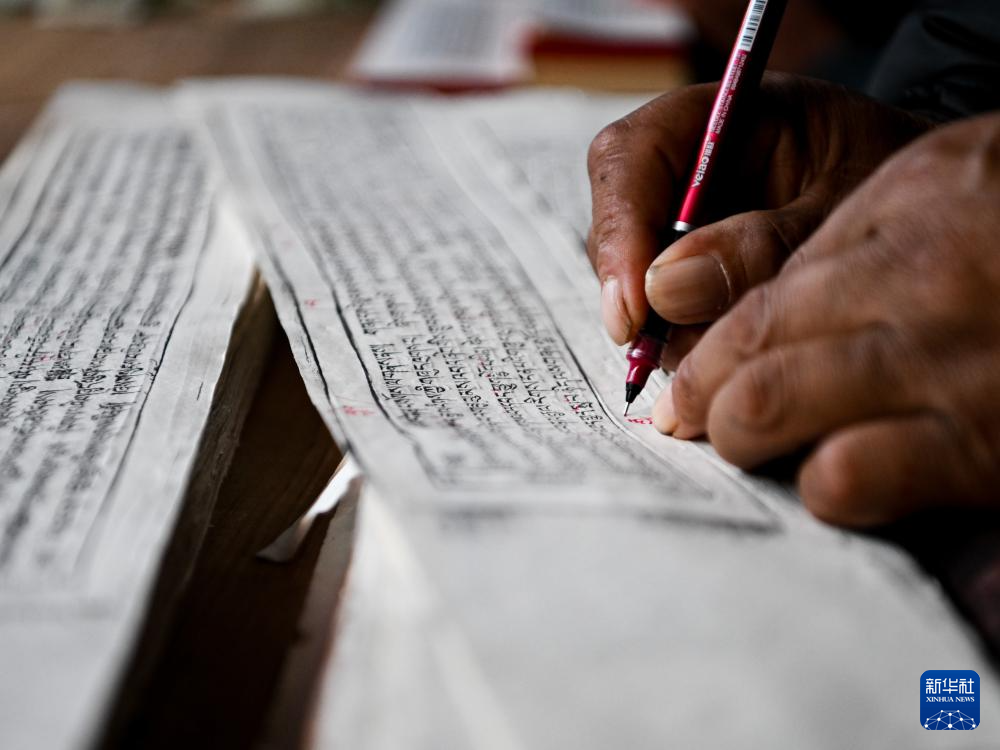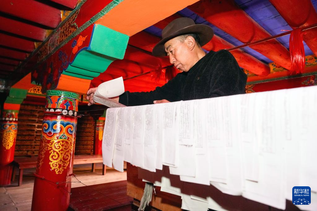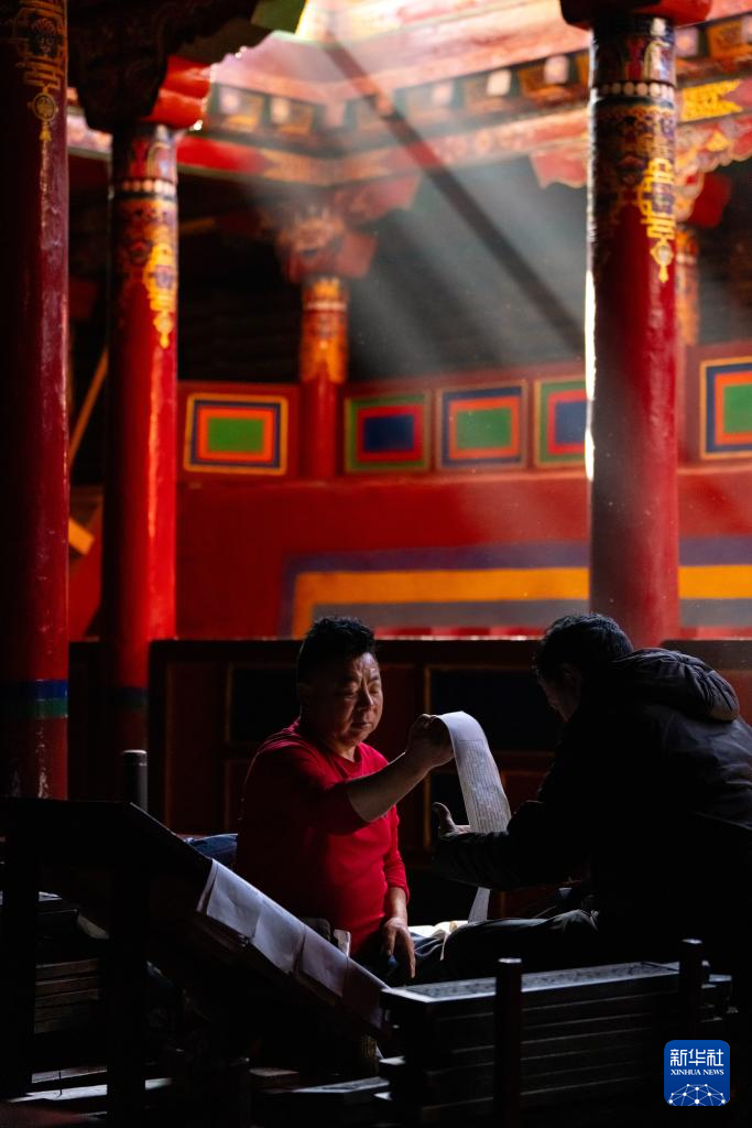 11月2日,德格印經院的工人在校對剛印完的印刷品。