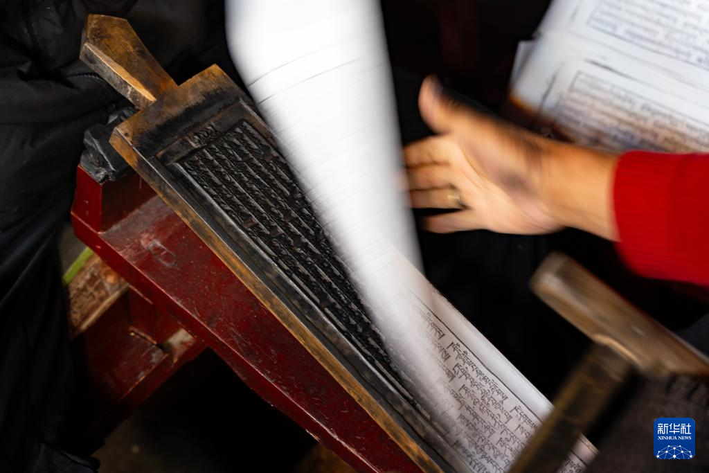 11月2日,德格印經院的工人使用院藏印版印刷。