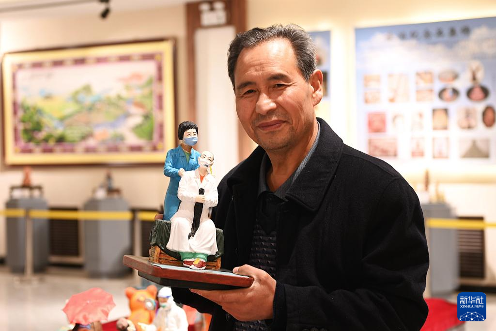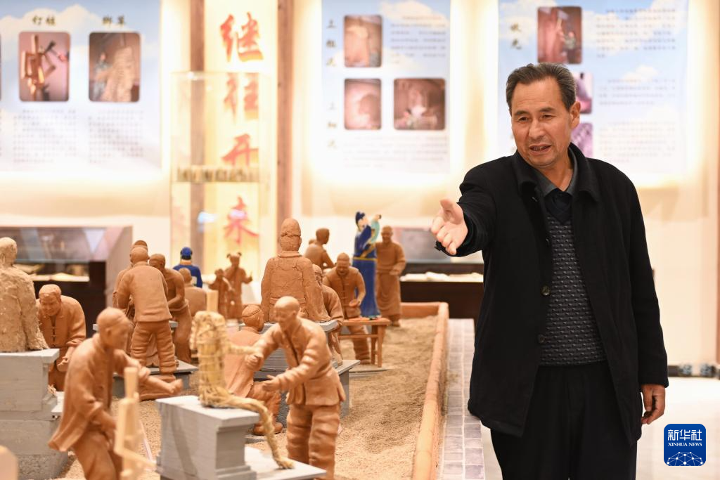 10月31日,楊佳年在隆德縣楊氏彩塑藝術館展示獲獎彩塑作品。