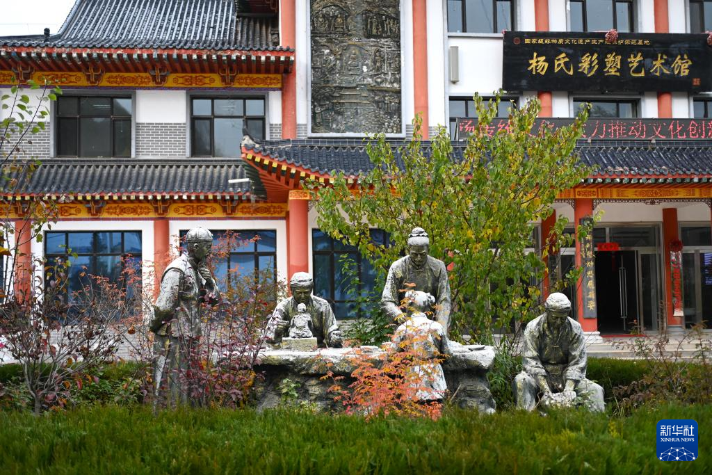這是10月31日在隆德縣楊氏彩塑藝術館前拍攝的彩塑作品。