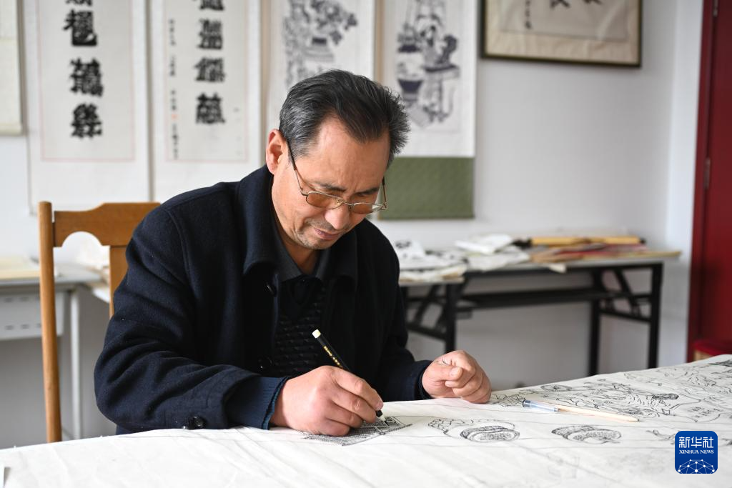 10月31日,楊佳年在隆德縣楊氏彩塑藝術館設計彩塑圖案。