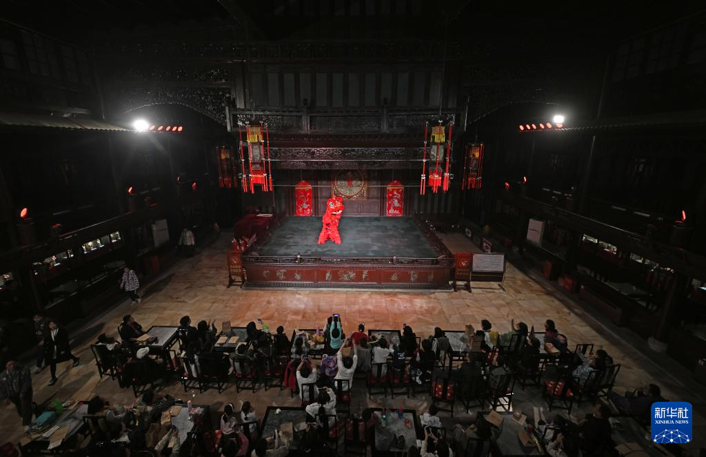 11月2日,觀眾在廣東會館戲樓觀看舞獅表演。