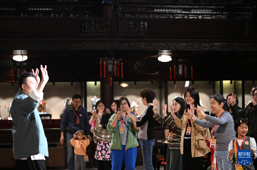11月2日,觀眾在演員指導下體驗戲曲動作。