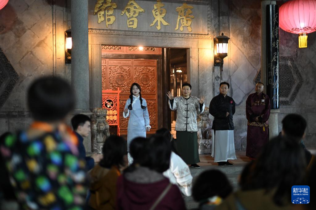 位于天津市南開區的廣東會館有百余年歷史,是天津戲劇博物館的所在地。近期,該會館引進了沉浸式互動戲劇項目“百年有戲 大河向東”,通過知識解謎、手工拼圖、模仿動作、登臺演出等形式,讓觀眾以深度體驗的方式參與其中。項目推出一個月來,吸引眾多觀眾走進這座百年戲樓,感受戲劇藝術的魅力。