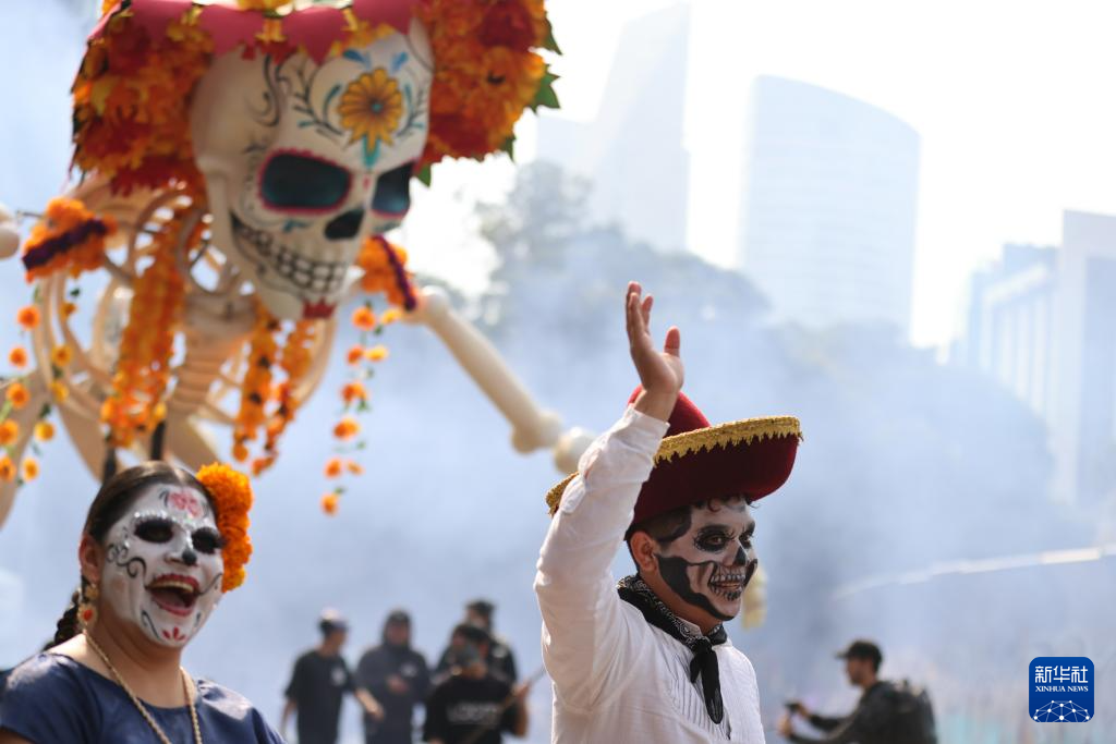11月2日,在墨西哥首都墨西哥城,演員參加亡靈節游行。