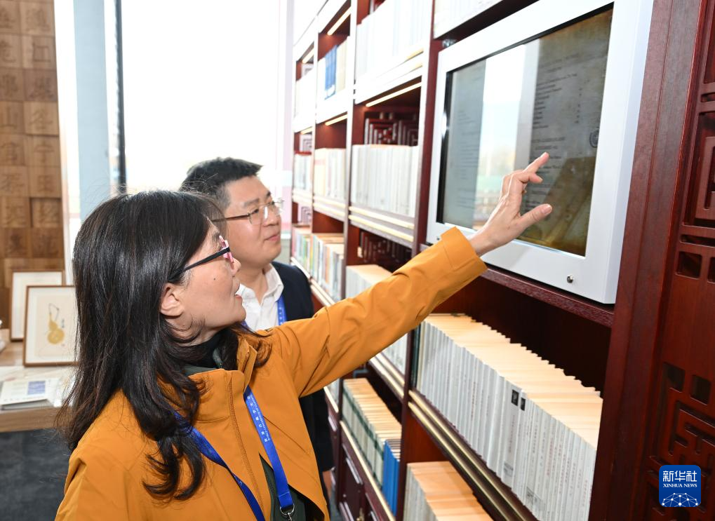 11月7日,工作人員在展覽現場為觀眾展示典籍觸摸交互式體驗。