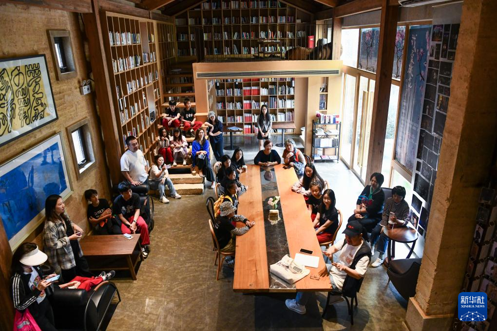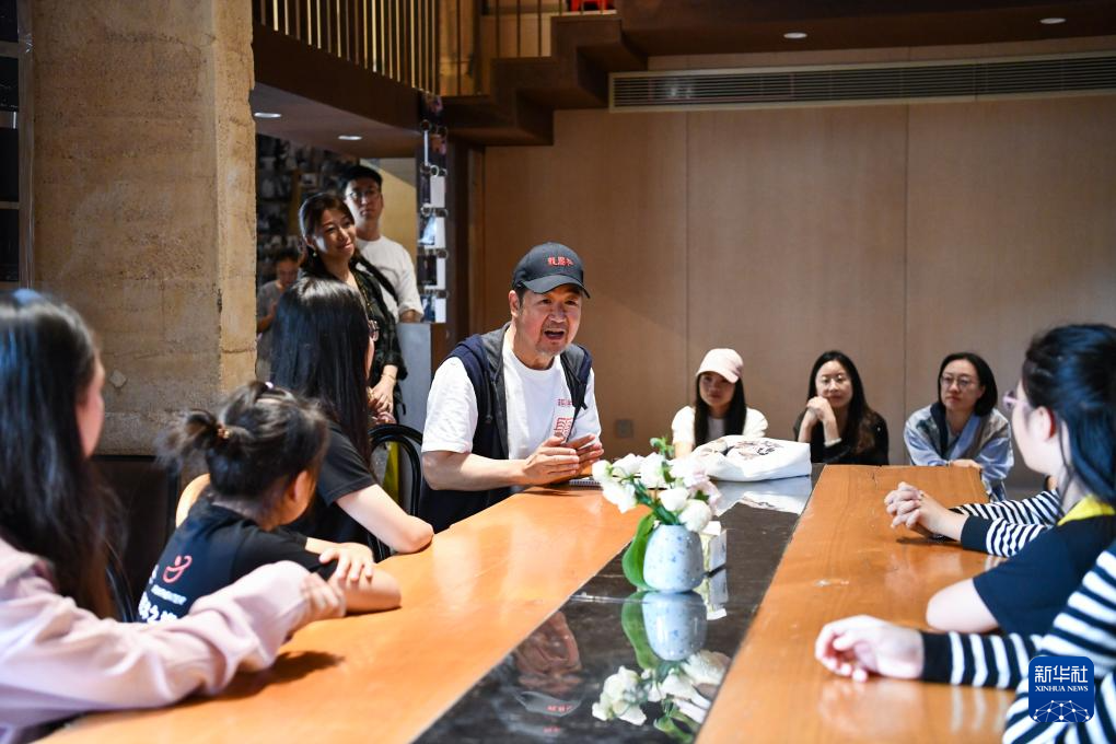 在長守戲劇谷,演員、導演張國立(中)與愛好戲劇的孩子們交流(11月9日攝)。