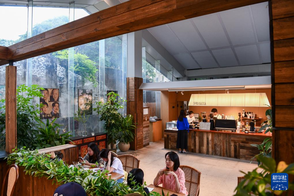 11月9日,游客在長守戲劇谷內的咖啡館休息。