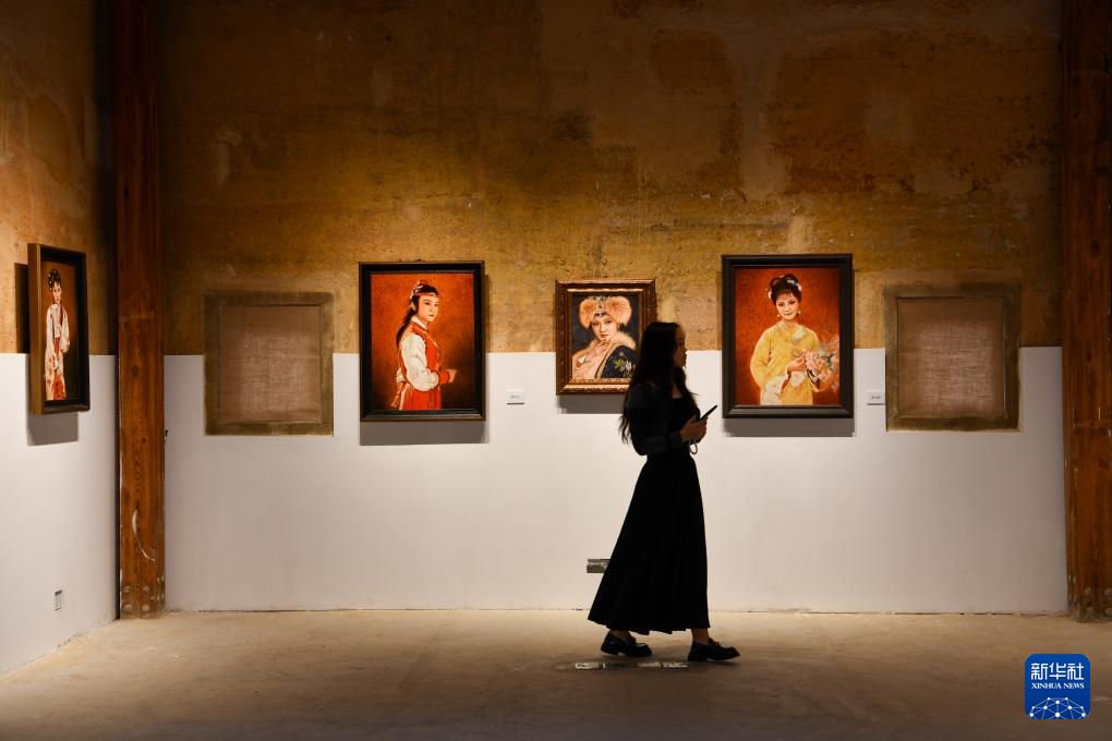 游客在長守戲劇谷欣賞《紅樓夢中人》畫展(11月9日攝)。