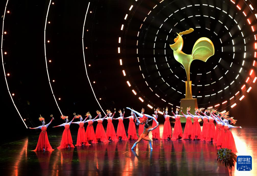 11月13日,演員在2024年中國金雞百花電影節開幕式上表演舞蹈《綻放》。