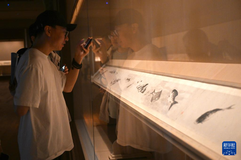 11月14日,觀眾在上海博物館東館中國歷代繪畫館拍攝清代朱耷的《魚鴨圖卷》。