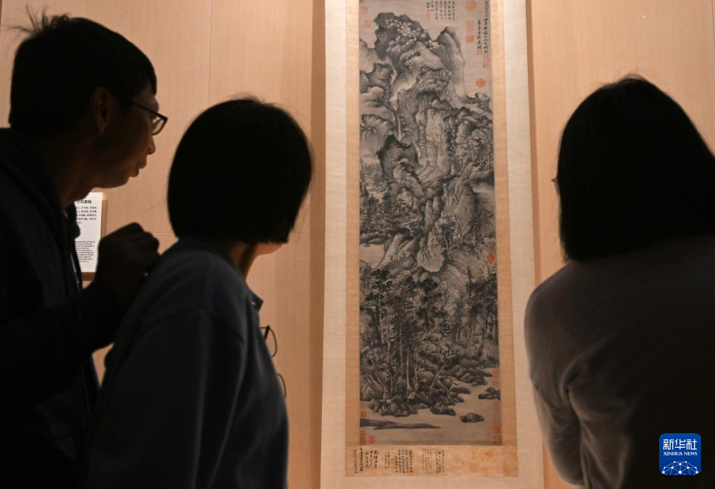 11月14日,在上海博物館東館中國歷代繪畫館,觀眾在元代王蒙的《青卞隱居圖》前駐足觀看。