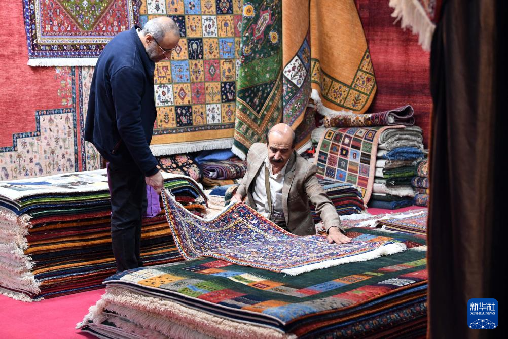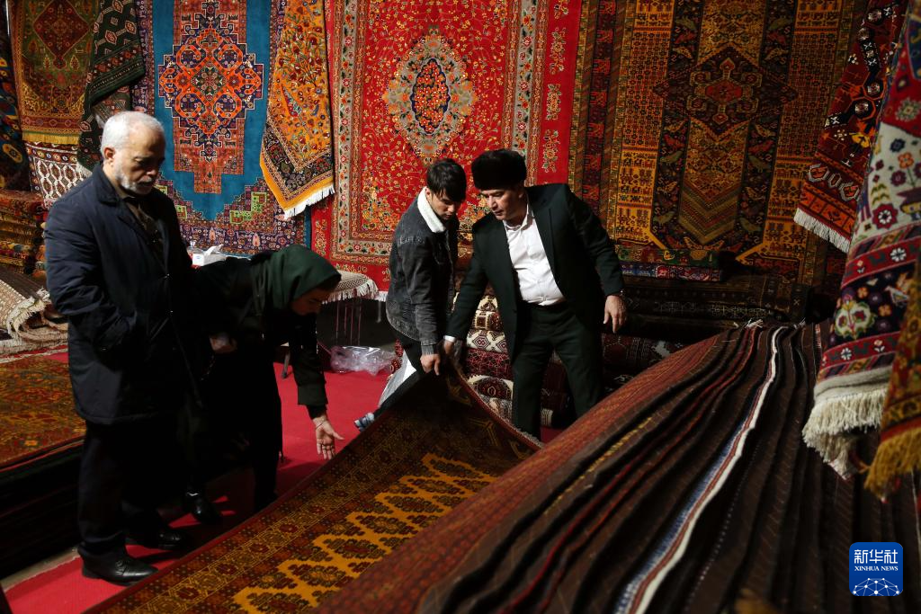 11月14日,在伊朗首都德黑蘭,顧客在伊朗國際手工地毯展上選購地毯。