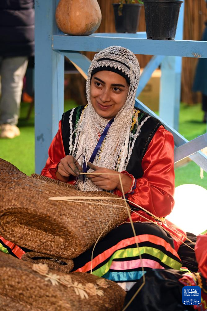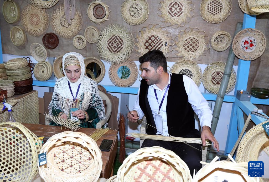 11月13日,在伊朗德黑蘭,參展商在伊朗第37屆全國手工藝品展覽會上展示手工藝品制作技藝。