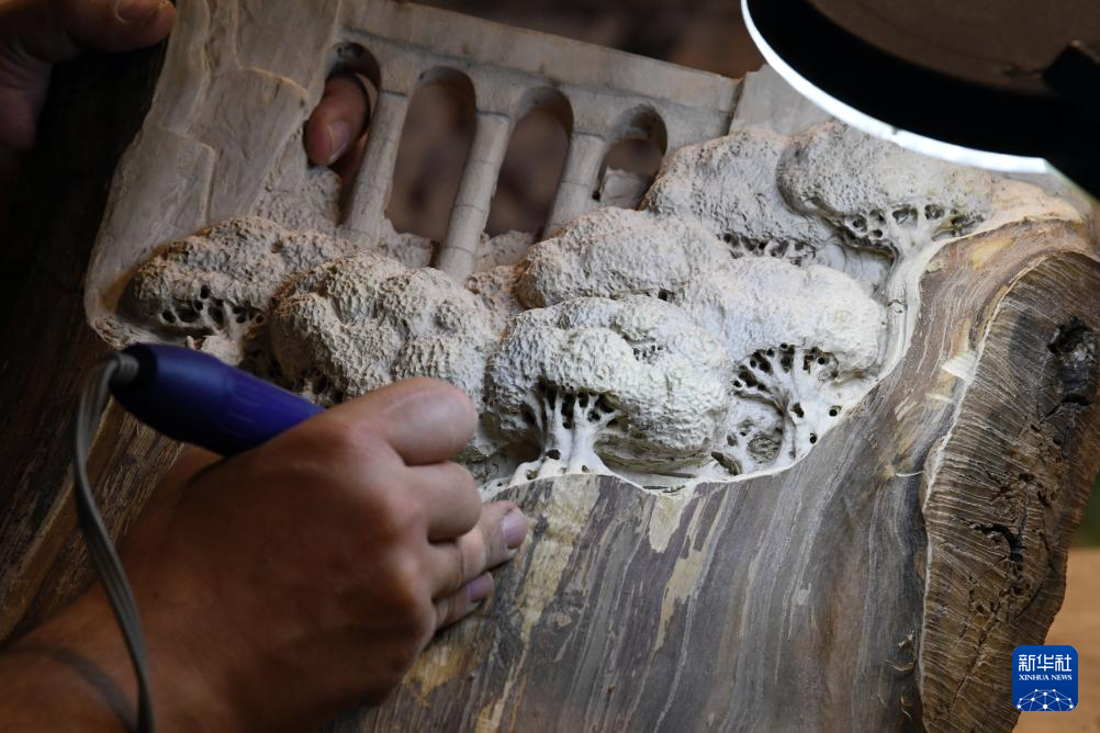 11月13日,在伊朗德黑蘭,一名參展商在伊朗第37屆全國手工藝品展覽會上展示手工藝品制作技藝。