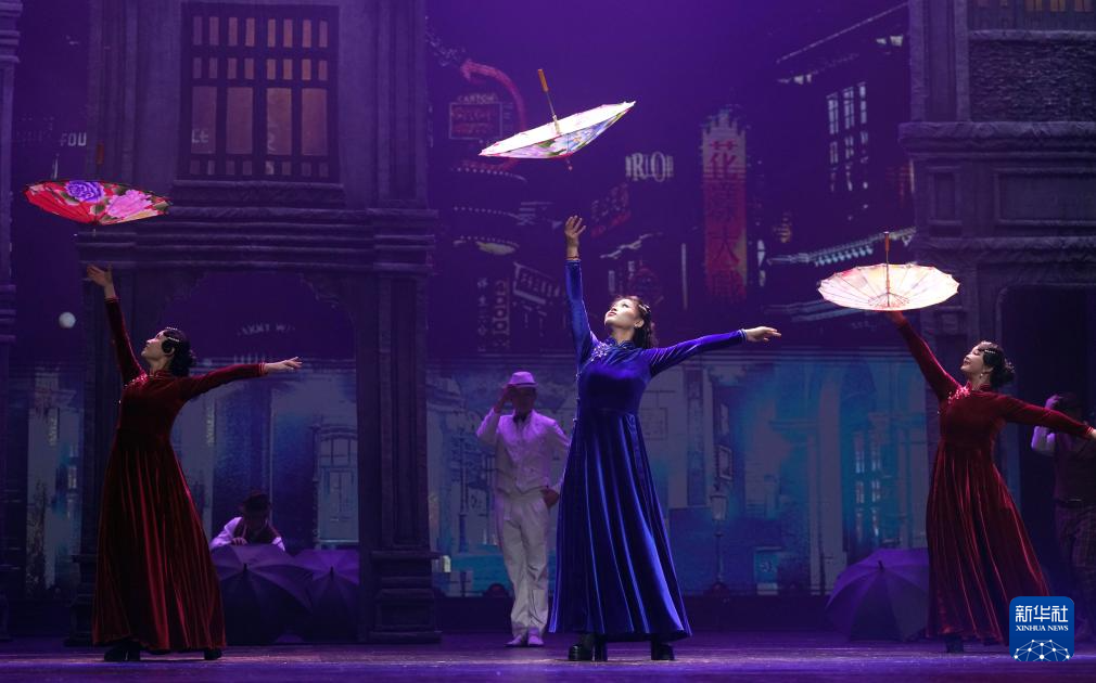 11月15日,在北京保利劇院舉行的“金菊競芳——新時代全國優秀雜技節目展演”上,南充市雜技團演員表演魔術《邂逅》。