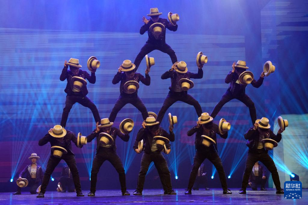11月15日,在北京保利劇院舉行的“金菊競芳——新時代全國優秀雜技節目展演”上,四川省遂寧市雜技團演員表演雜技《熠熠生輝——頂碗》。