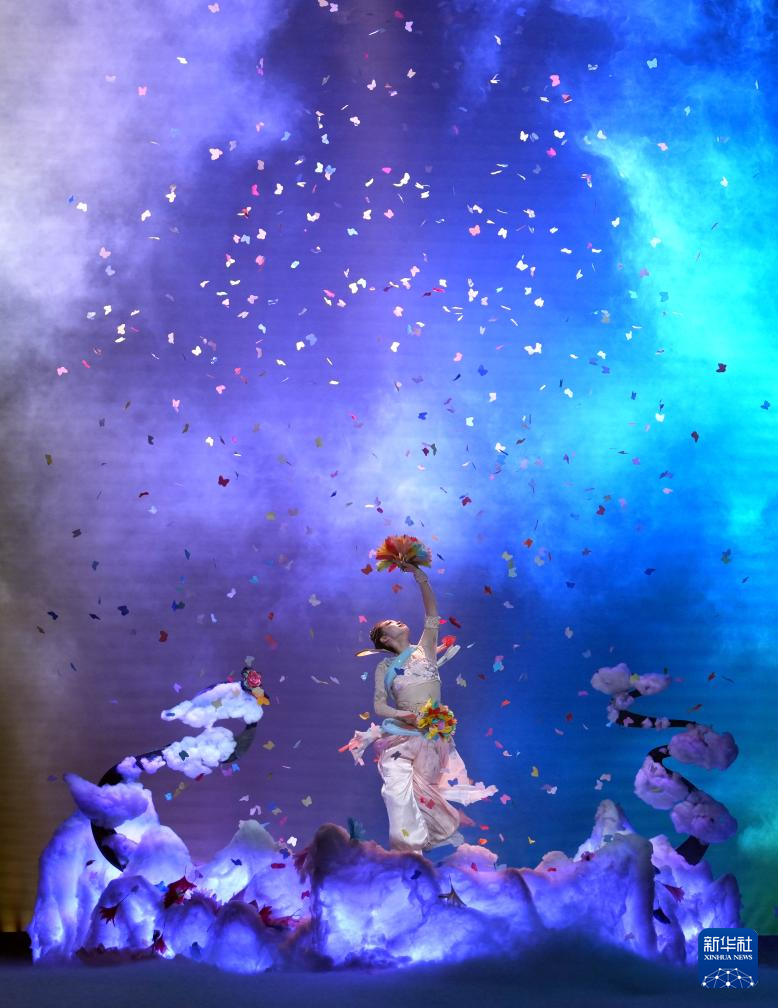 11月15日,在北京保利劇院舉行的“金菊競芳——新時代全國優秀雜技節目展演”上,重慶雜技藝術團有限責任公司演員表演魔術《天女散花》。