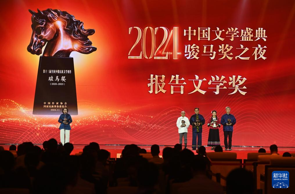 11月16日晚,由中國作家協會、國家民族事務委員會、廣西壯族自治區人民政府共同主辦的“2024中國文學盛典·駿馬獎之夜”在廣西南寧國際會展中心舉行。