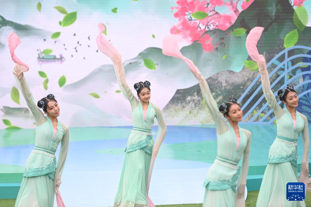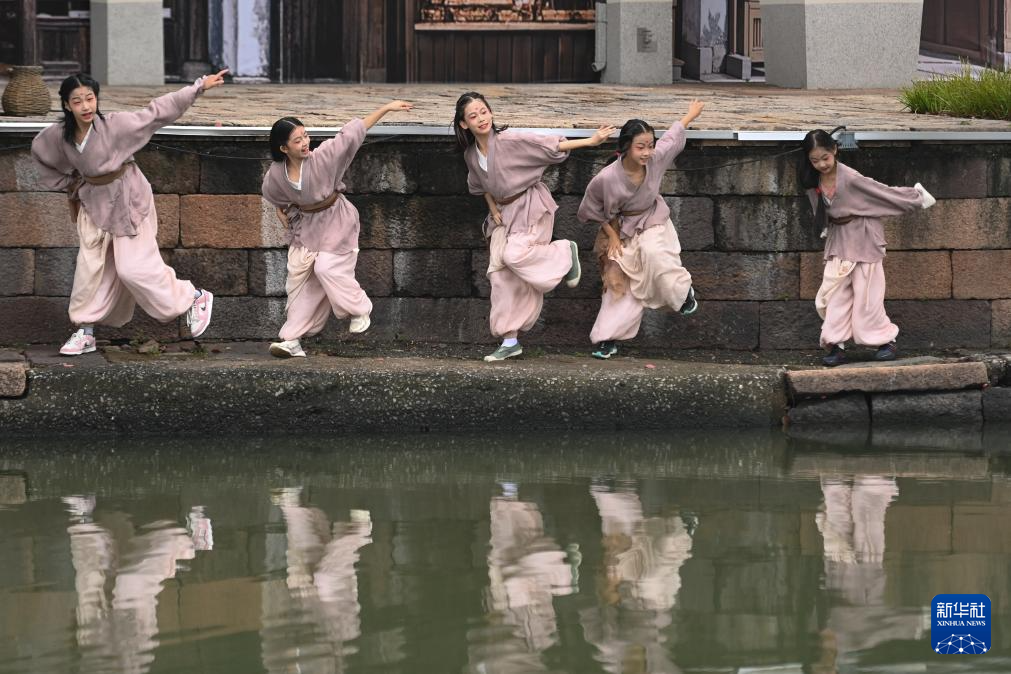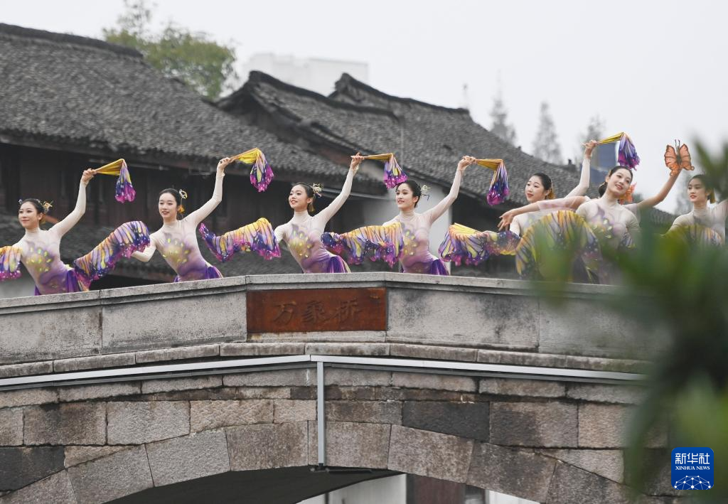 當日,為期3天的新市古鎮舞蹈藝術季在浙江省德清縣新市古鎮開幕。在開幕式“融·古今”環境舞蹈展演環節,演員們以新市古鎮為舞臺,移步換景,串聯表演諸多舞蹈節目,將舞蹈的靈動與古鎮的韻味相融合,給觀眾帶來全新的體驗。