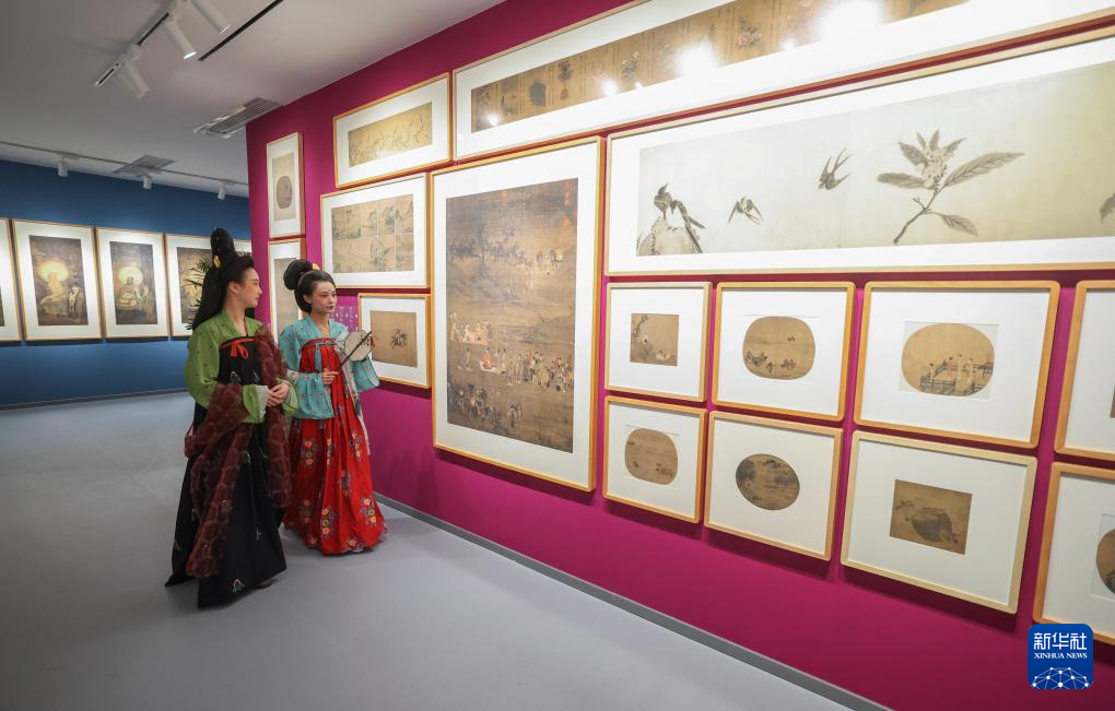 11月25日,身著傳統服飾的觀眾在“中國歷代繪畫大系”典藏館內參觀。