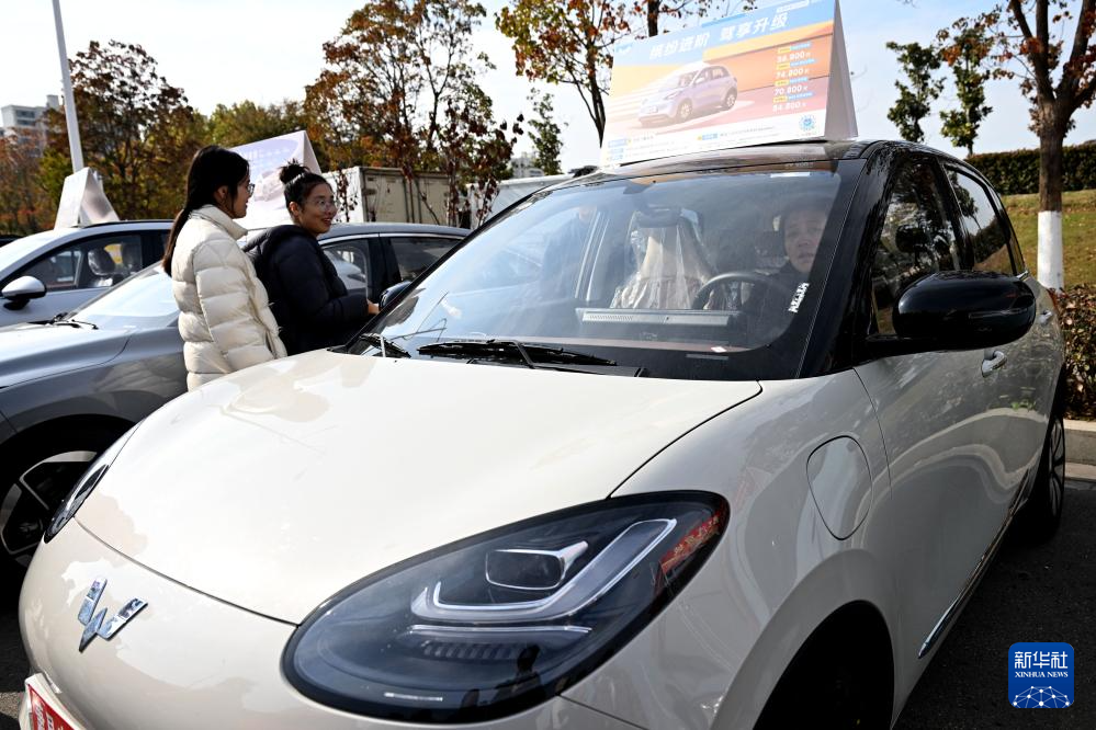11月24日,人們在蕭縣“十月古會”汽車展銷區參觀體驗。