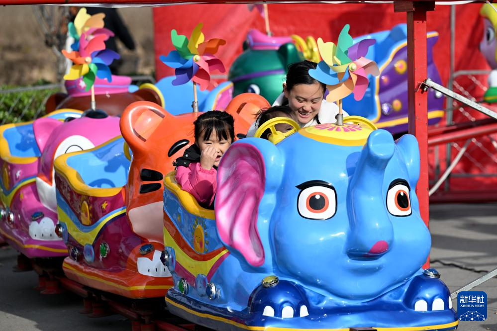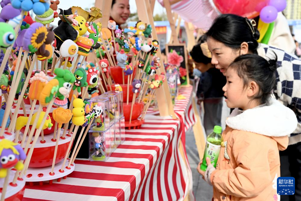 11月24日,家長帶著小朋友在蕭縣“十月古會”上游玩。