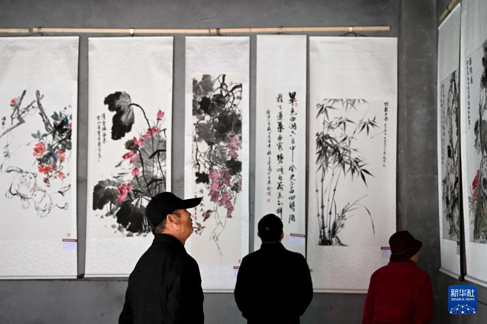 11月24日,人們在蕭縣“十月古會”書畫展覽上參觀。