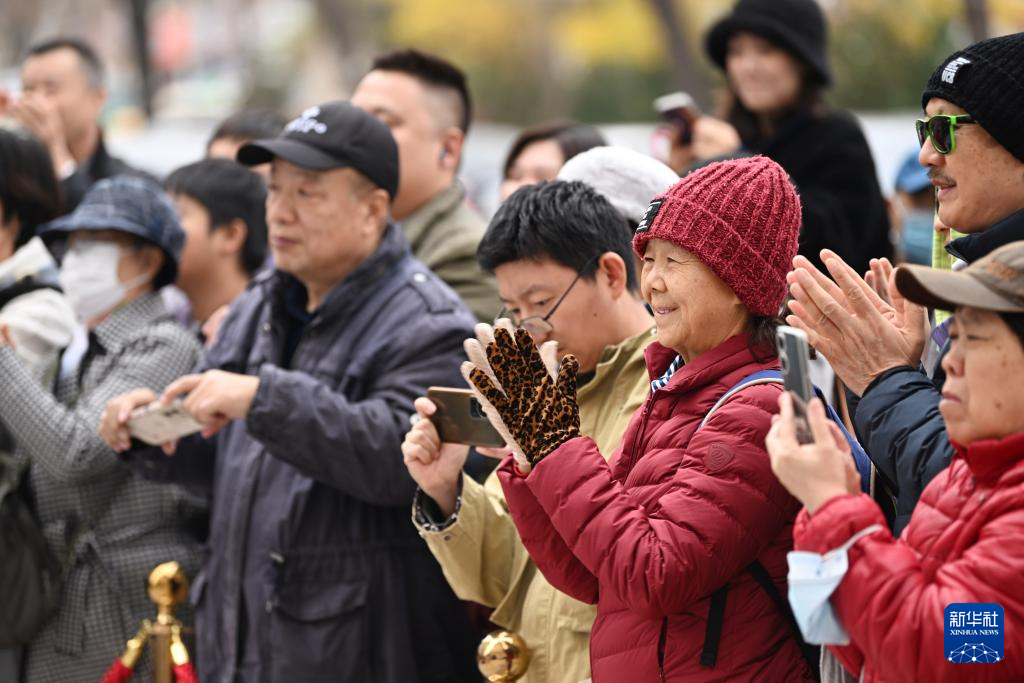 11月24日,觀眾在天津人民藝術劇院門前觀看演出。